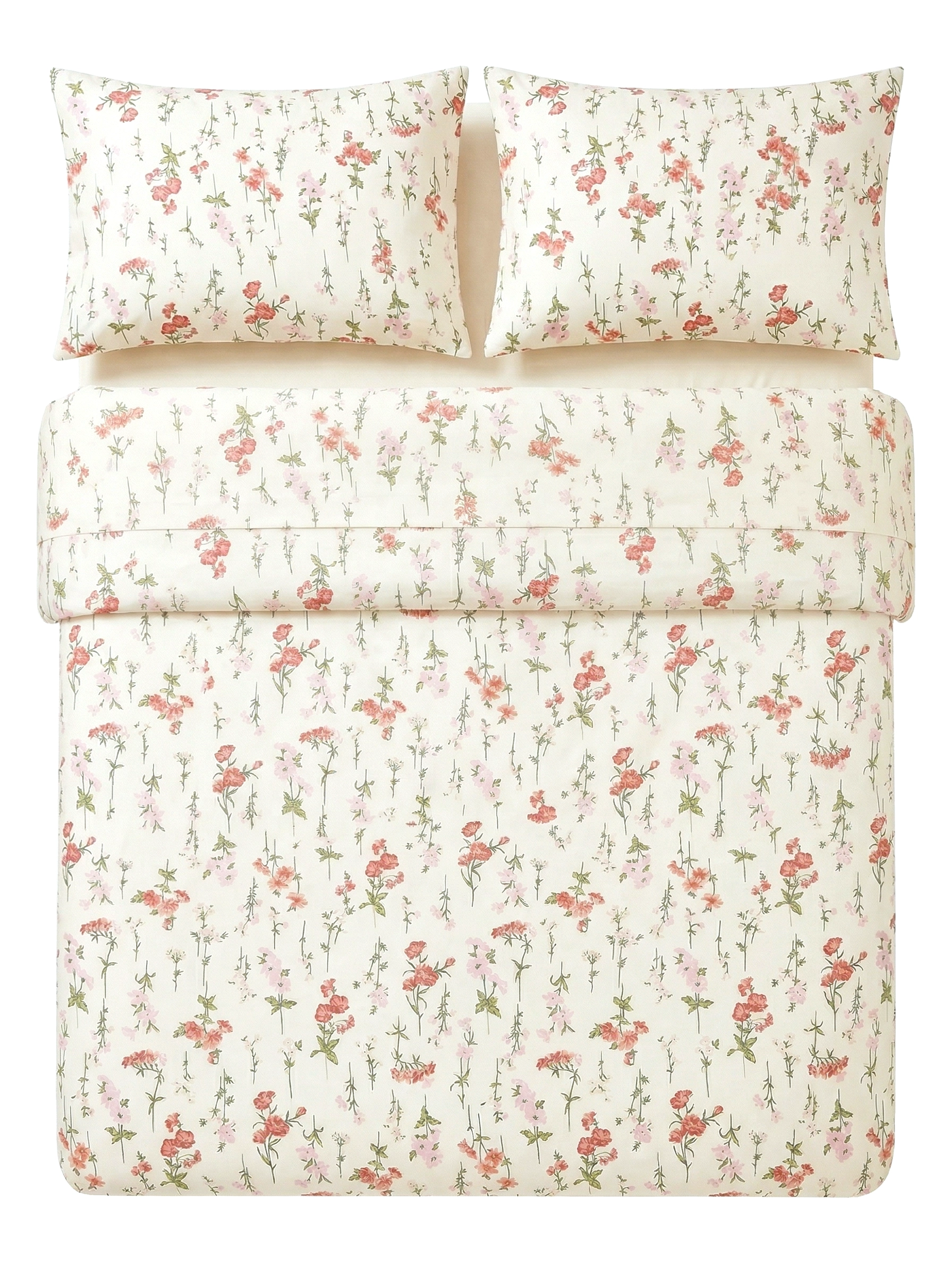 Delikatne kwiatuszki w odcieniach koralowego różu i bladoróżowego rozsiane na kremowym tle — jakby ktoś właśnie przyniósł do sypialni bukiet polnych kwiatów. Wzór łączy romantyzm cottagecore z lekkością wiosennego ogrodu. Pasuje do sypialni w stylu prowansalskim, boho i skandynawskim — wszędzie tam gdzie liczy się naturalność i subtelność. Satyna bawełniana o gęstym splocie jest gładka i jedwabiście miękka w dotyku, przyjemna bezpośrednio przy skórze. 100% naturalna bawełna zapewnia swobodną cyrkulację powietrza przez całą noc — nie przegrzewa latem, otula zimą. Kolory zachowują barwę po wielu praniach, tkanina się nie mechaci i nie traci kształtu.