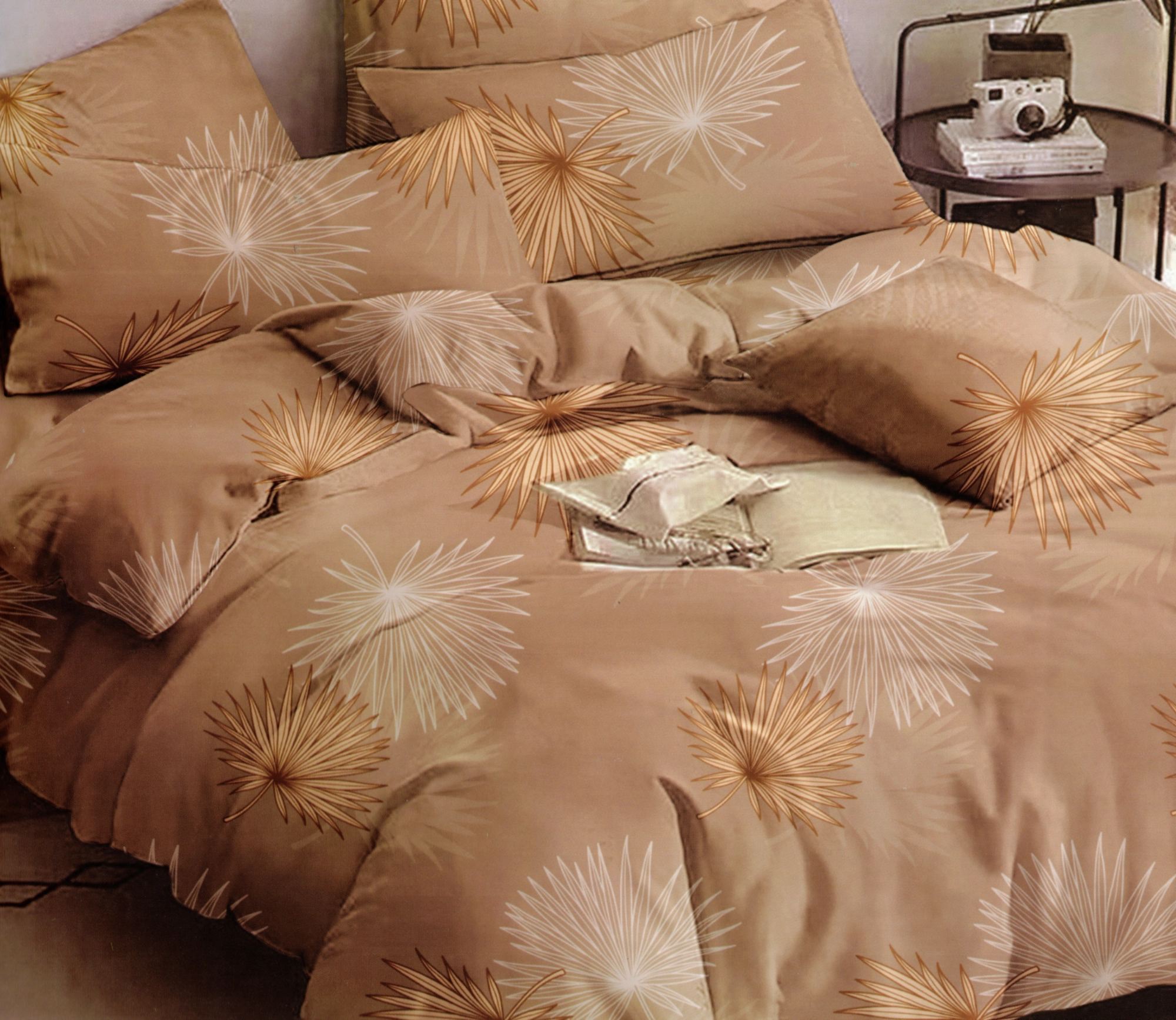 - Wzór pościeli: Wzór w liście / motyw roślinny (Liście Palmowe).