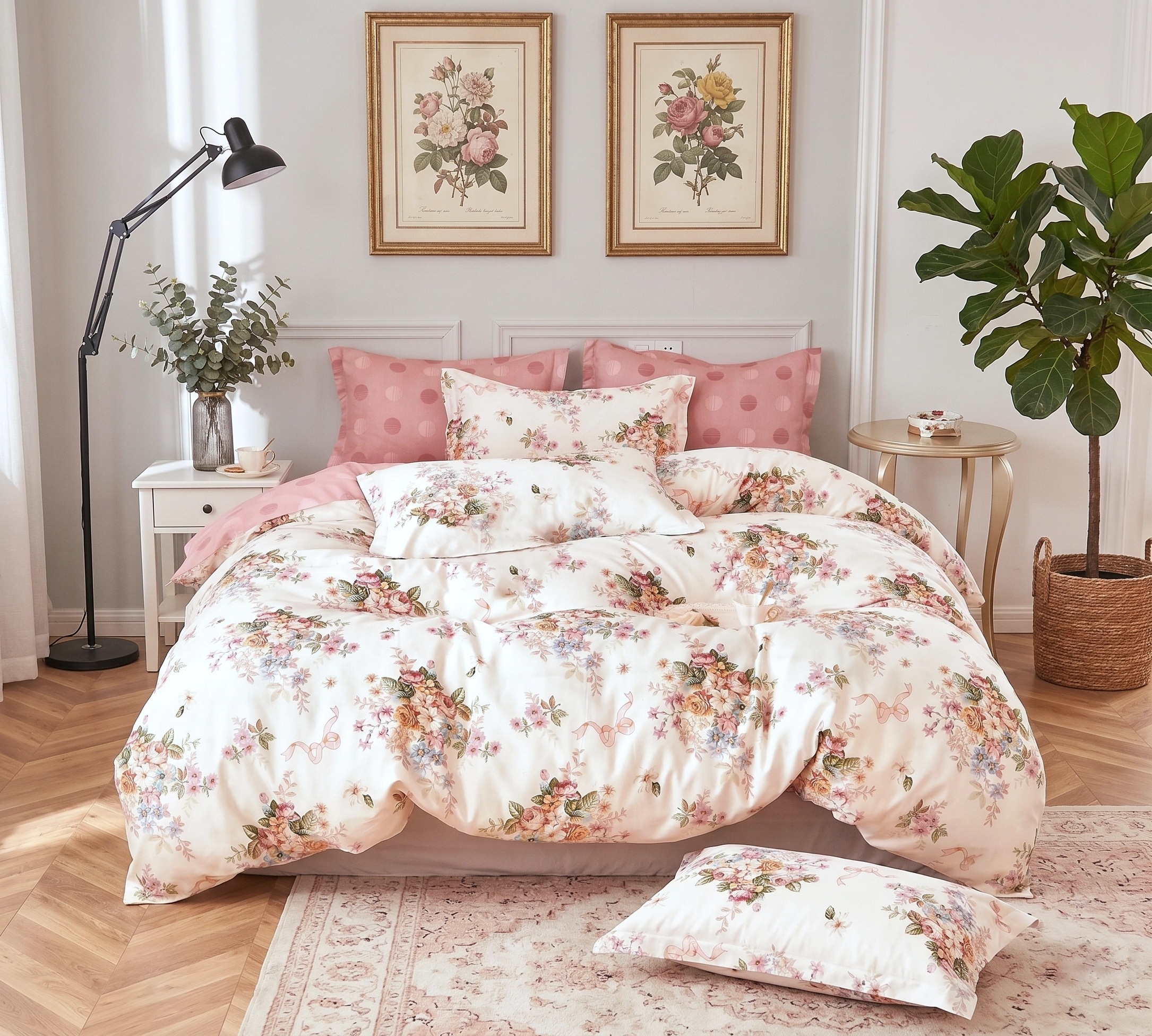 Wprowadź do swojej sypialni delikatny urok z naszą pościelą w małe różowe kwiatki. Każdy malutki kwiatek to jak subtelny akcent świeżości, nadający Twojej przestrzeni sypialnianej lekkości i uroku. Odkryj, jak prostota małych kwiatków może sprawić, że Twój sen stanie się jeszcze piękniejszy. Nasza pościel w małe różowe kwiatki to nie tylko element dekoracyjny, to również zaproszenie do spokojnego odpoczynku w otoczeniu delikatnej przyrody. Miękka, przyjemna w dotyku tkanina w pastelowych odcieniach różu sprawi, że każda noc stanie się miłą podróżą przez kwiatowy ogród. Teraz możesz cieszyć się spokojem snu w otoczeniu uroczych kwiatków.