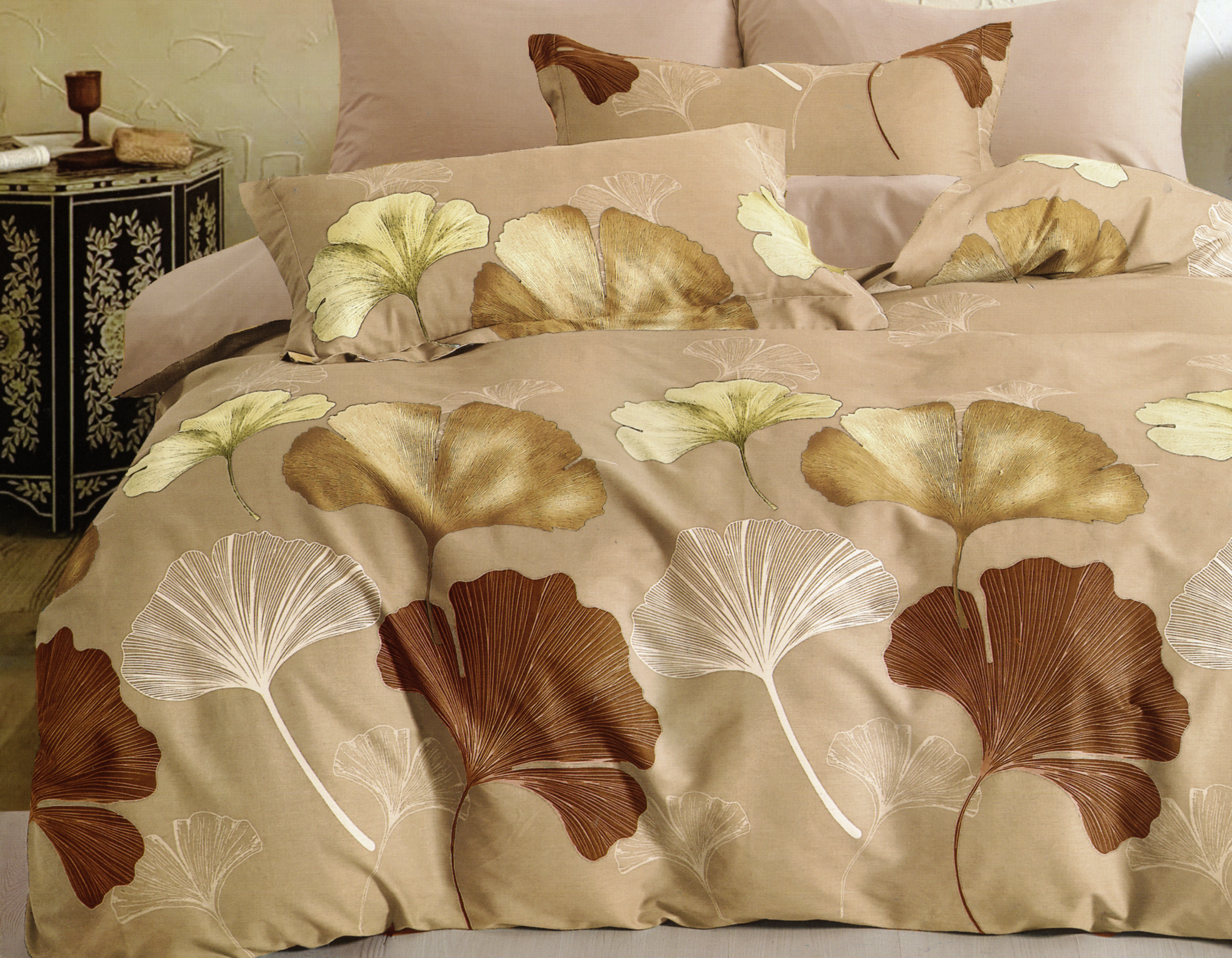 Pościel 160x200 satyna bawełniana w liście jesienna miłorzębu
