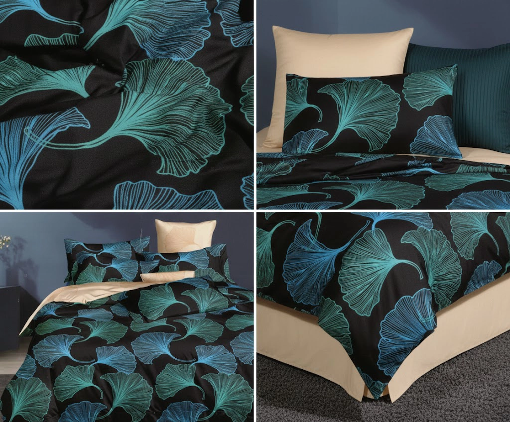 Pościel 160x200 satyna bawełniana w liście miłorzębu japońskiego ciemna