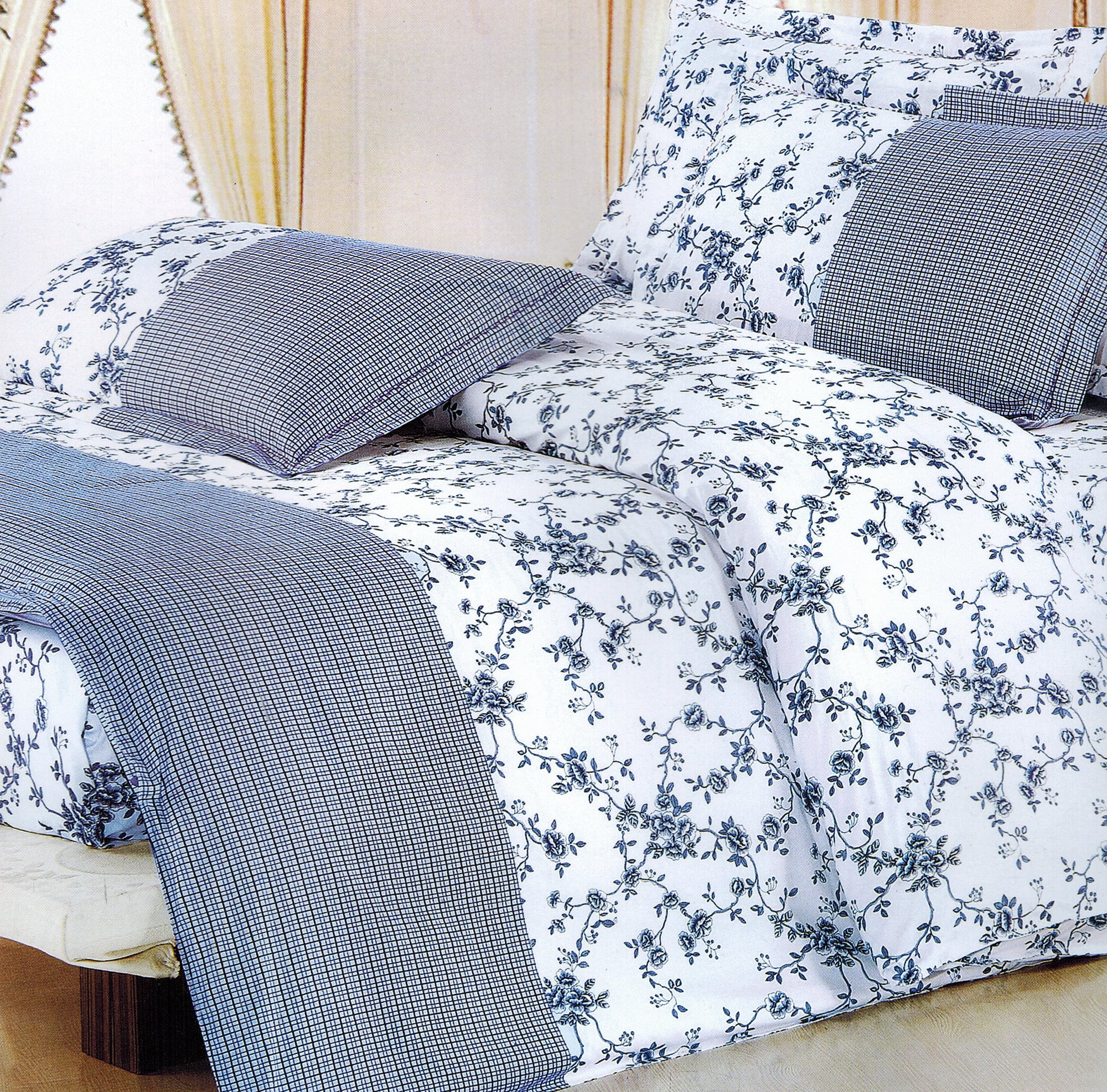 Pościel 180x200 satyna bawełniana niebieska w kwiaty