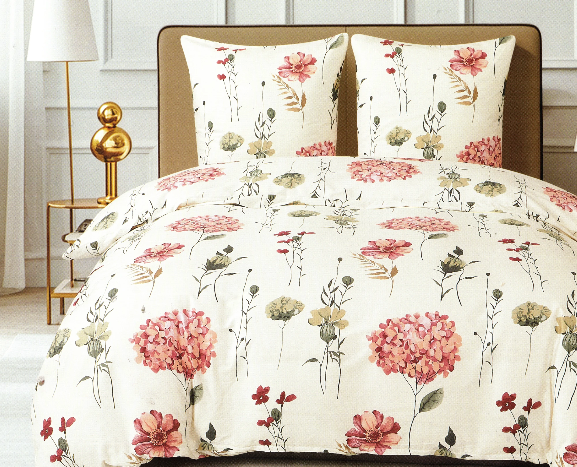Pościel 200x220 satyna bawełniana w hortensje rustykalna kremowa 100% bawełna