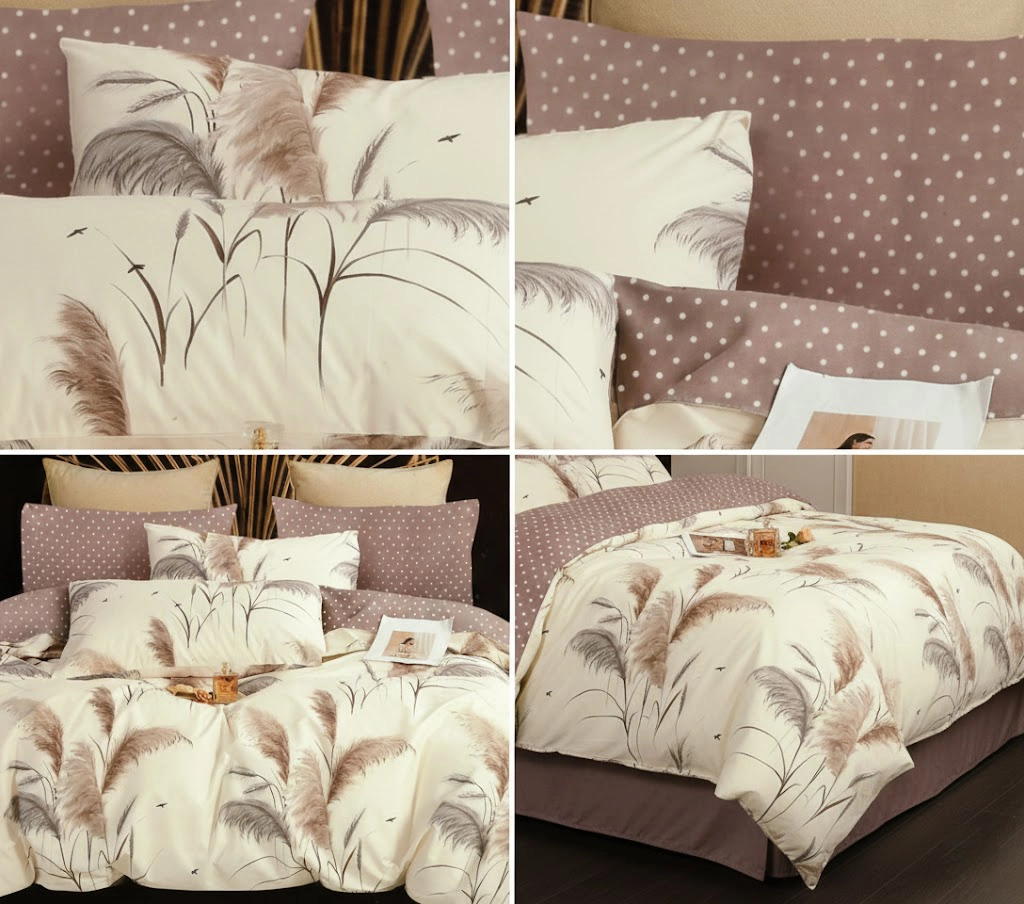 Pościel 200x220 z satyny bawełnianej w trawy pampasowe rustykalna