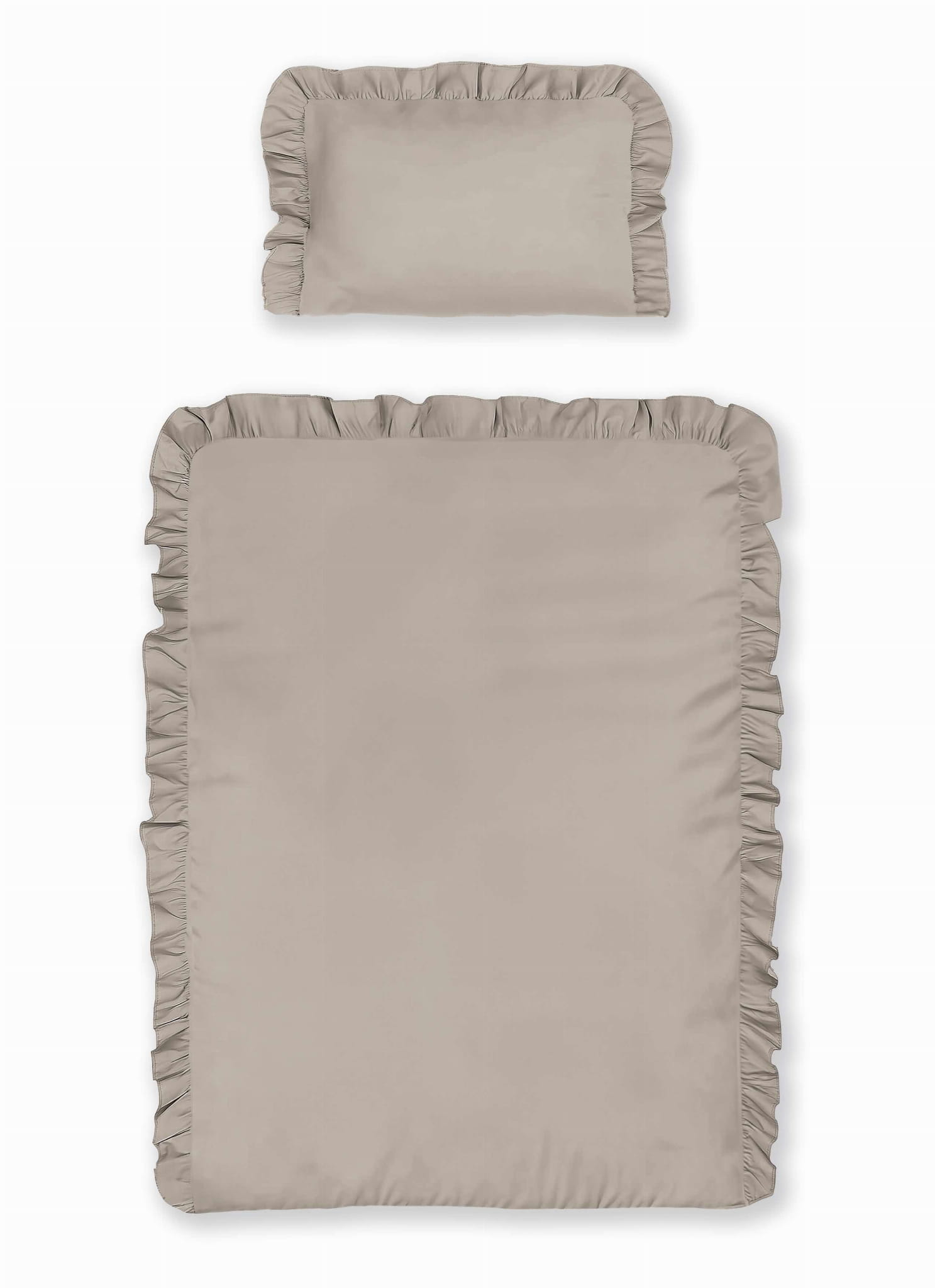 Pościel do łóżeczka 100x135 z falbaną taupe beżowa