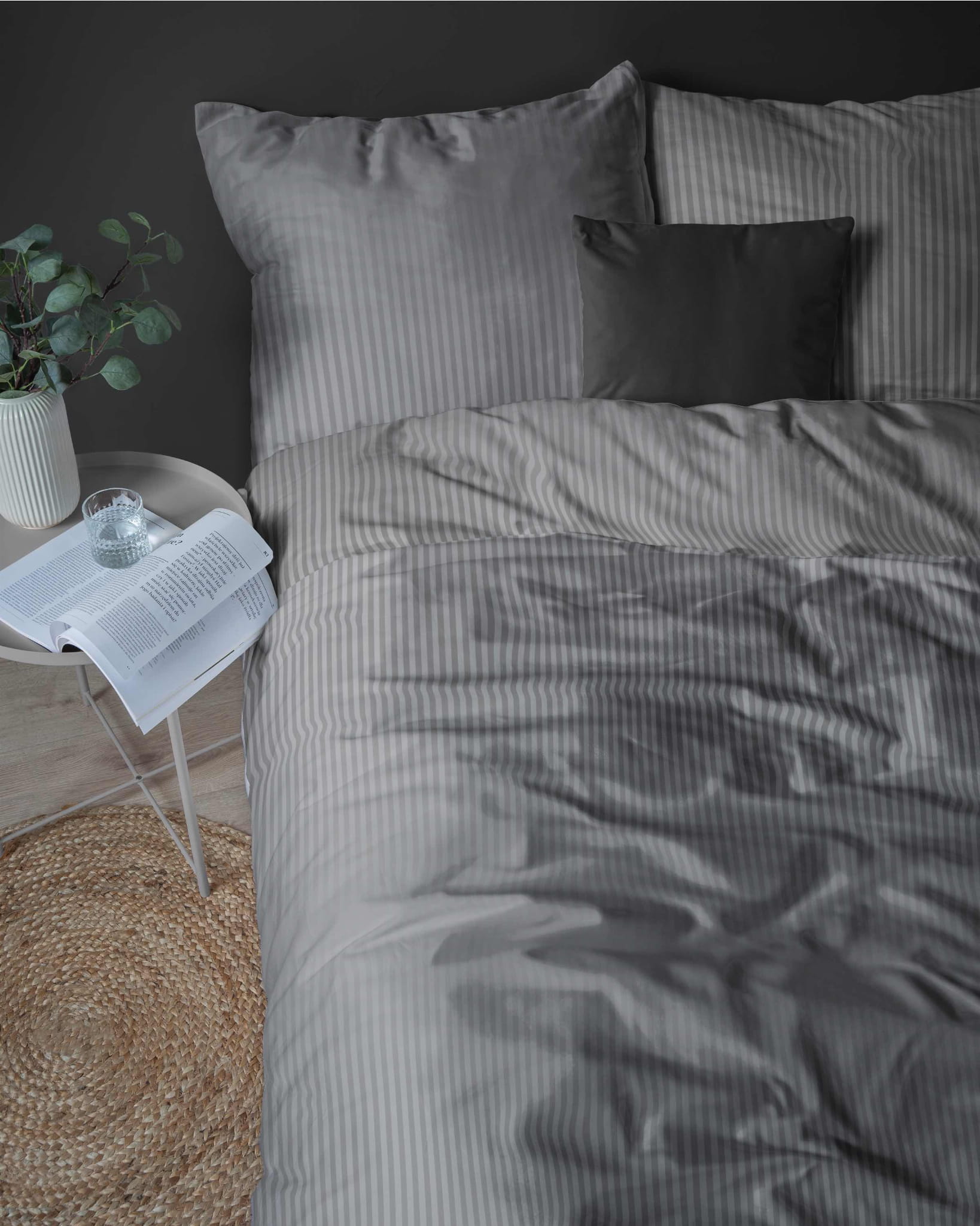 Pościel hotelowa adamaszek 150x200 w paski ciemnoszara