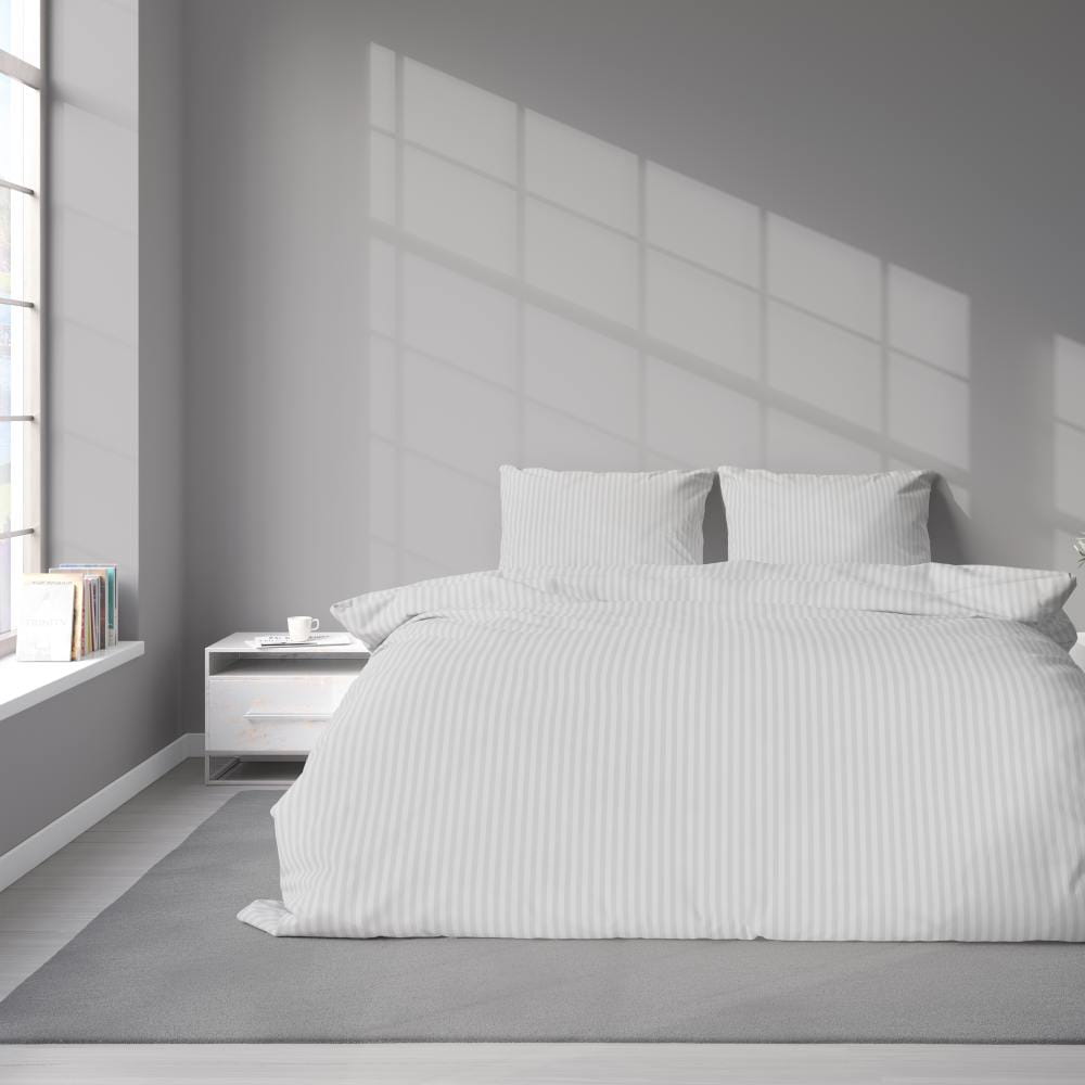 Pościel hotelowa adamaszek 160x200 w paski srebrna szara