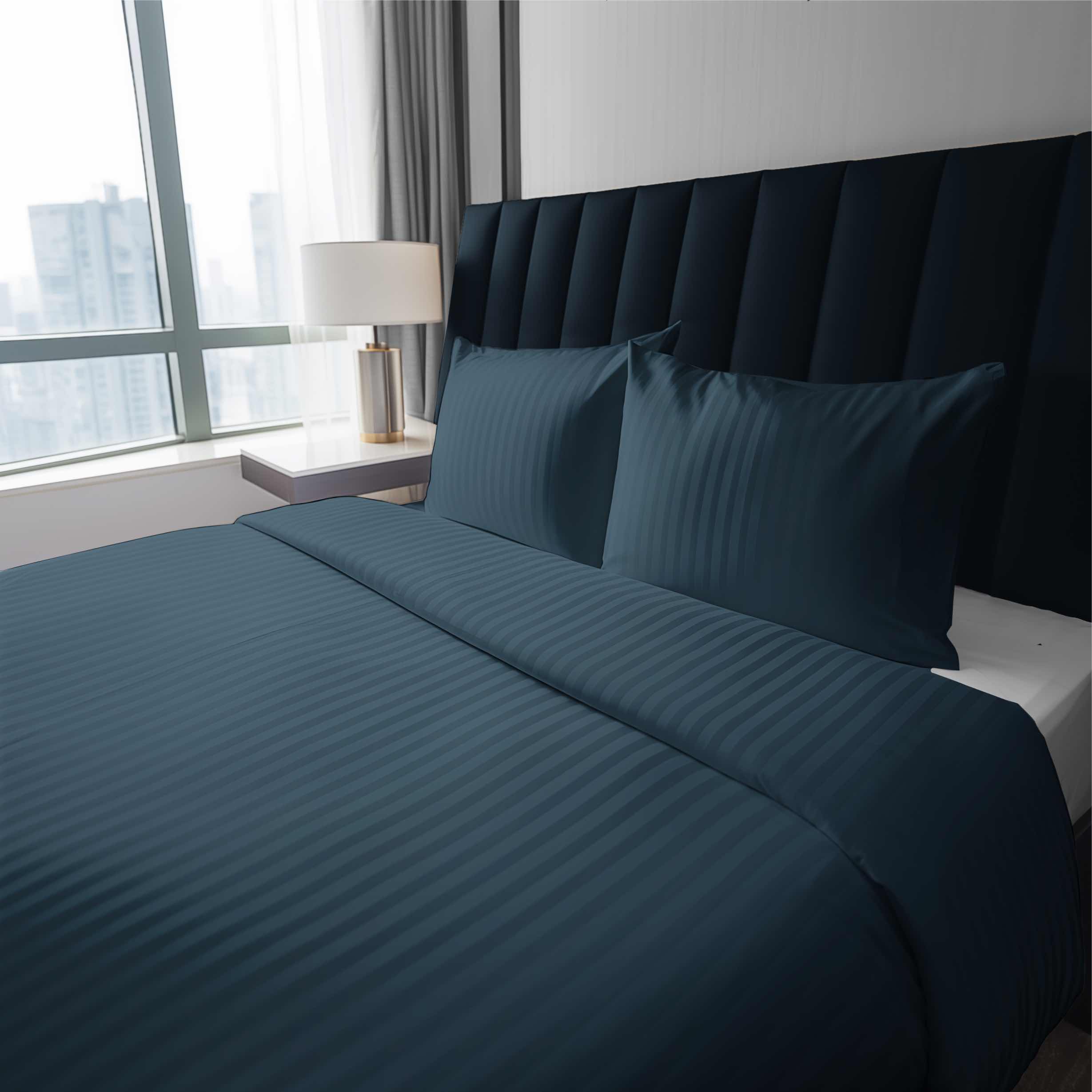 Pościel hotelowa adamaszek 180x200 w paski granatowa denim