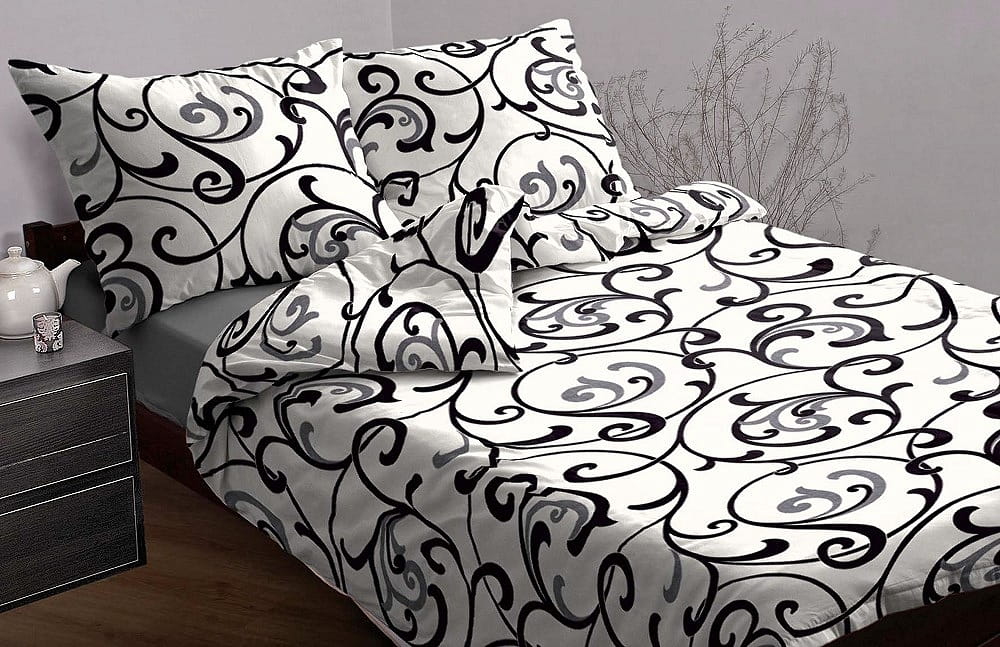 Wzór pościeli: Pościel w kolorach czerni i bieli.