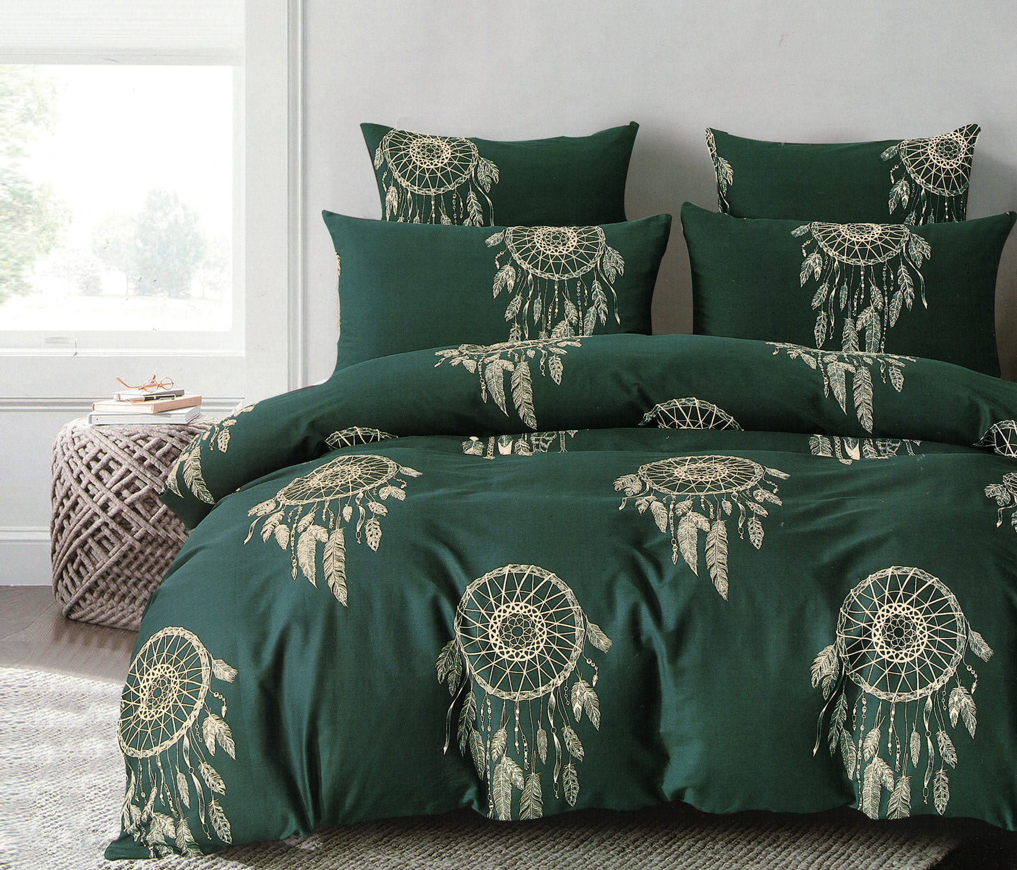 Pościel satyna bawełniana 180x200 z łapaczem snów zielona