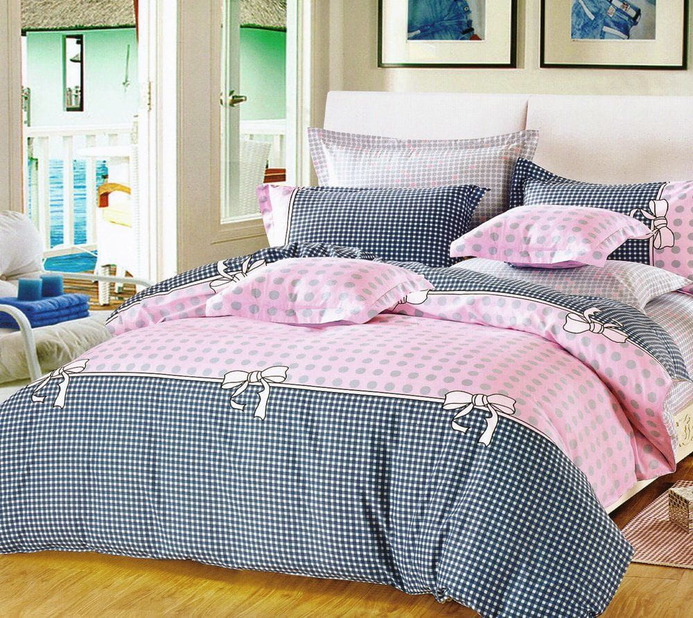 Pościel satyna bawełniana 200x220 100% bawełna kropki kokardy