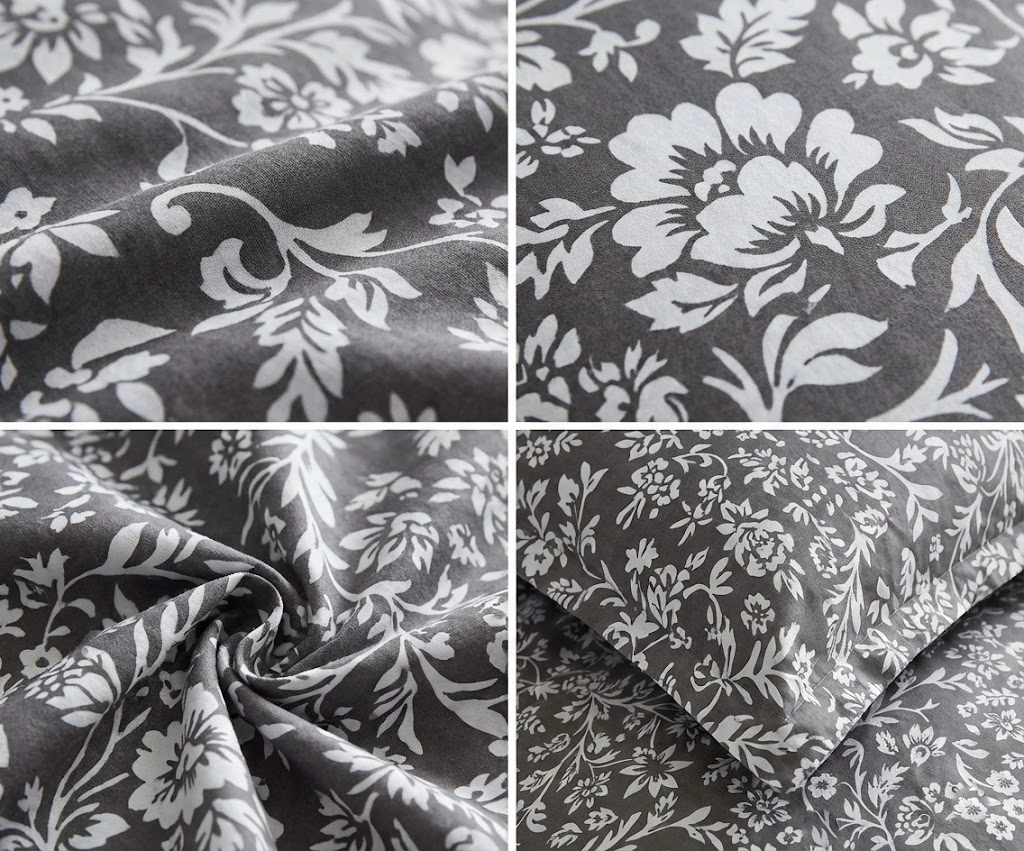 Wzór pościeli: Pościel wzór szary w drobne kwiatki.