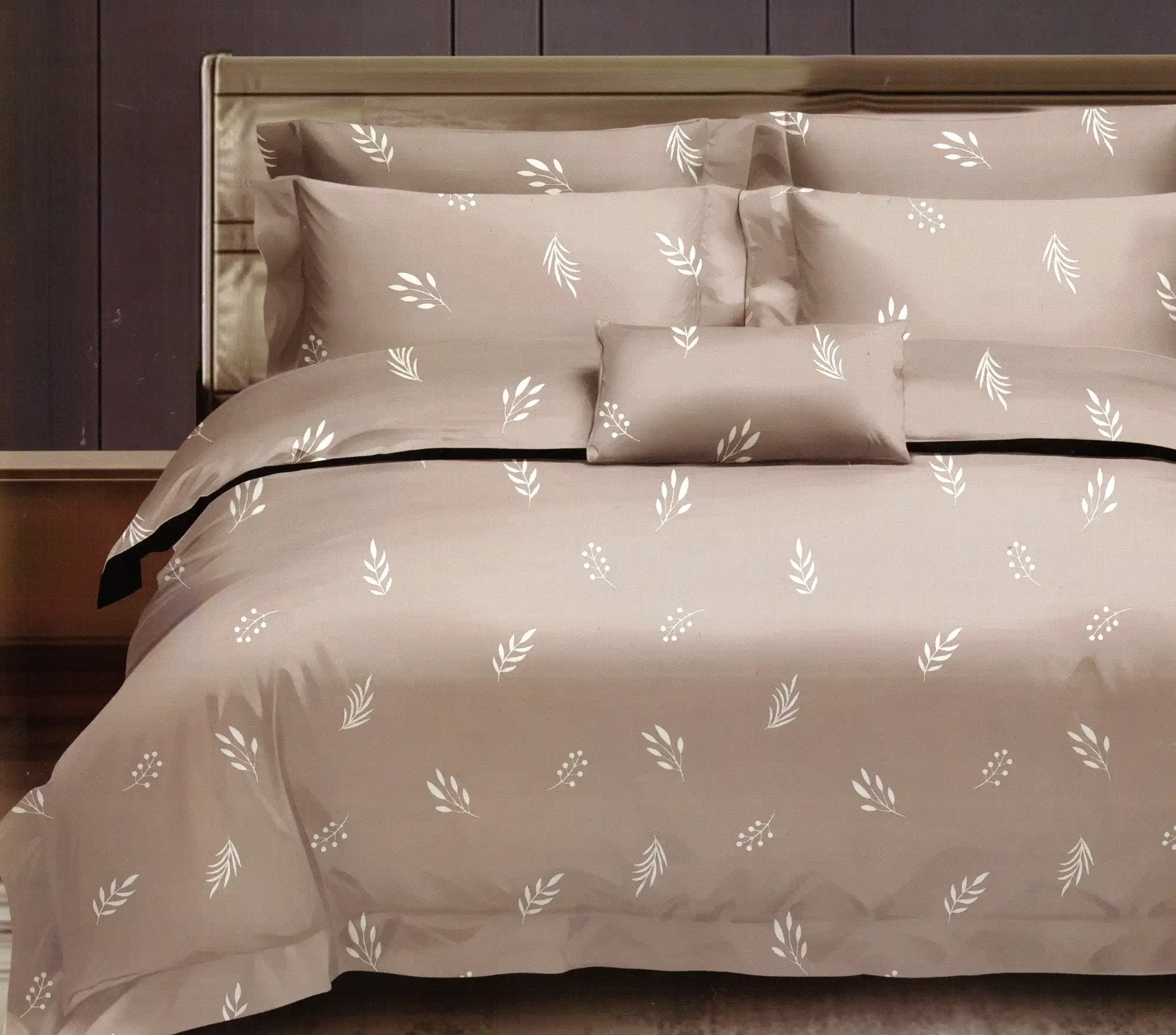 Pościel satyna bawełniana 200x220 beżowo- szara w drobne kwiatki