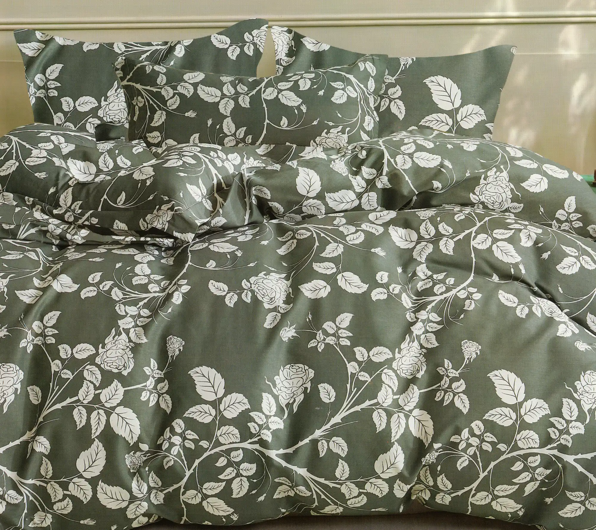 Pościel satyna bawełniana 200x220 szara w kwiaty róży
