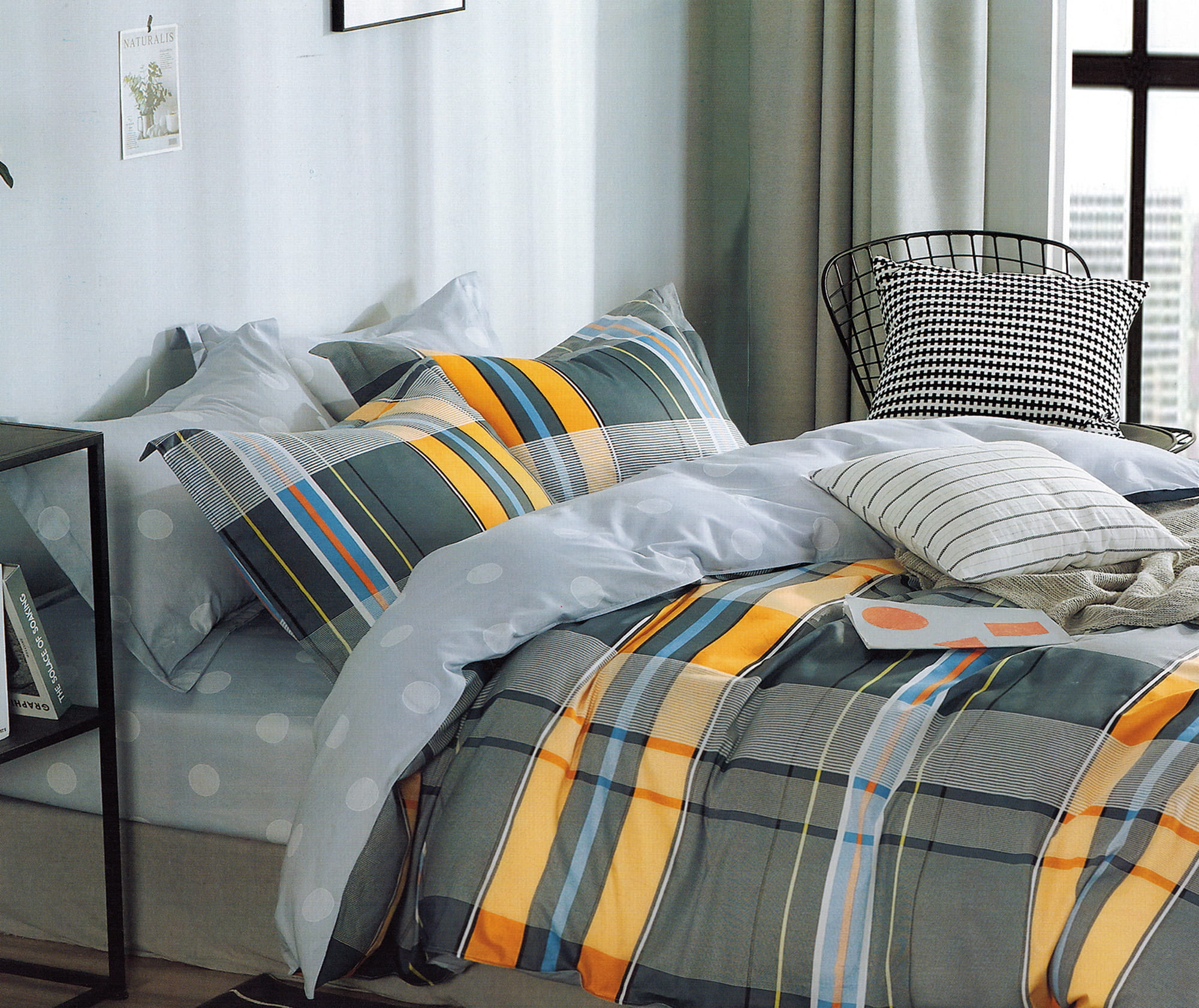 Pościel satyna bawełniana 200x220 żółto szara w kratę