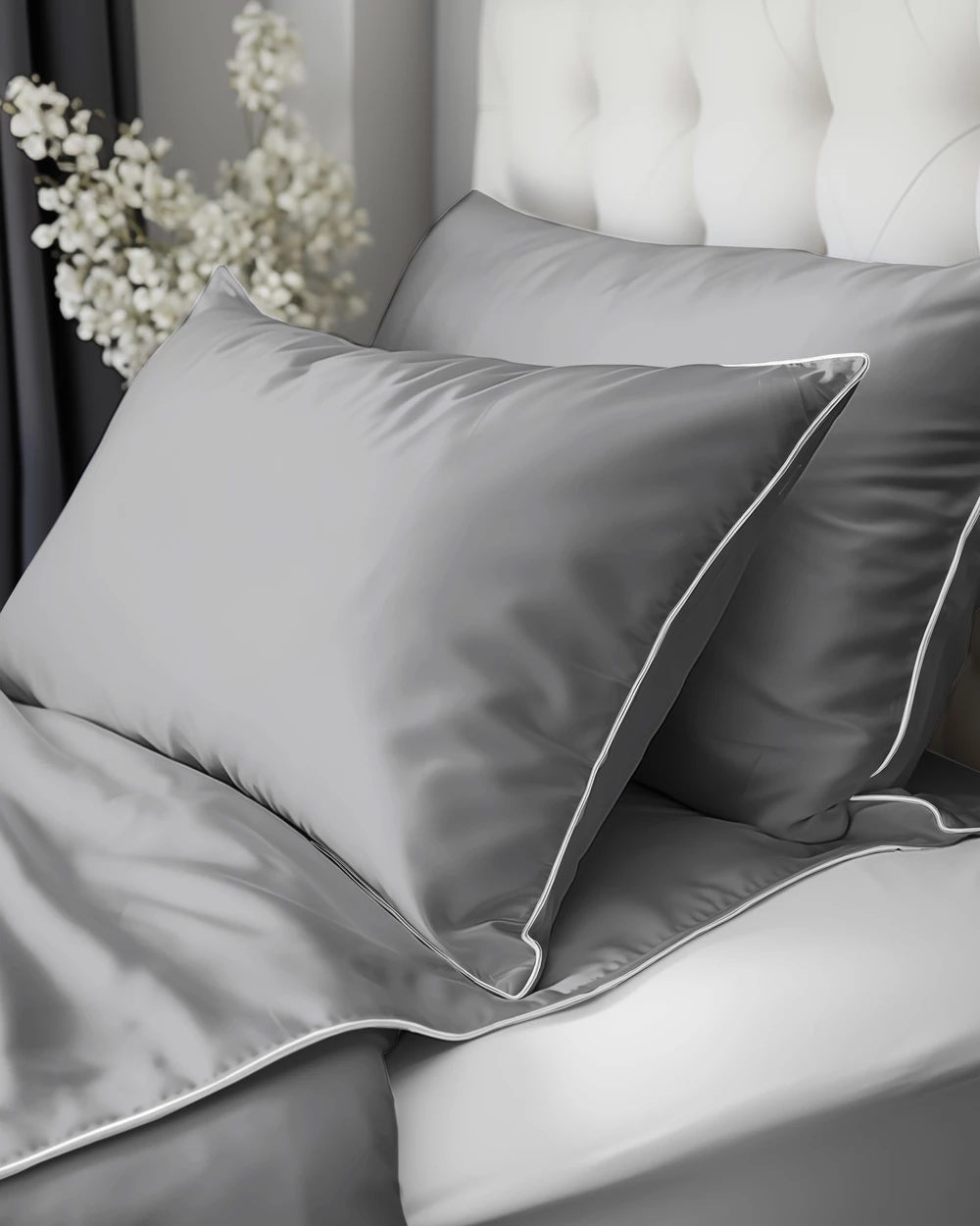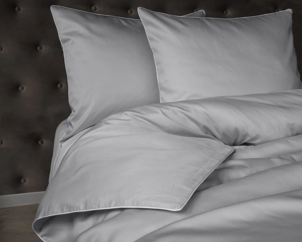 Pościel z makosatyny 160x200 z lamówką jasno szara