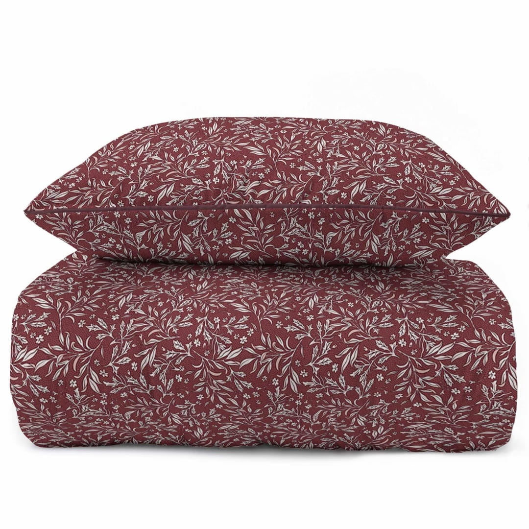 Pościel z perkalu 160x200 w rustykalna w drobne kwiaty czerwona