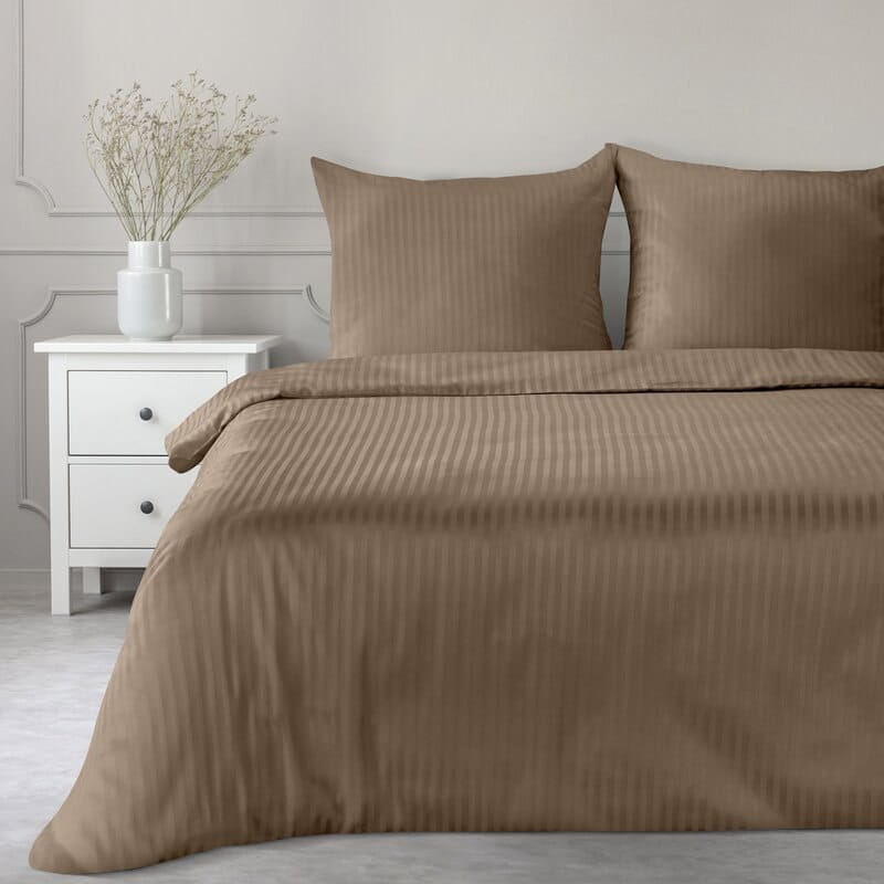 Pościel z satyny bawełnianej 140x200 z adamaszku satynowego brązowa w paski