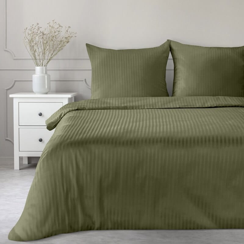 Pościel z satyny bawełnianej 140x200 z adamaszku satynowego oliwkowa w paski