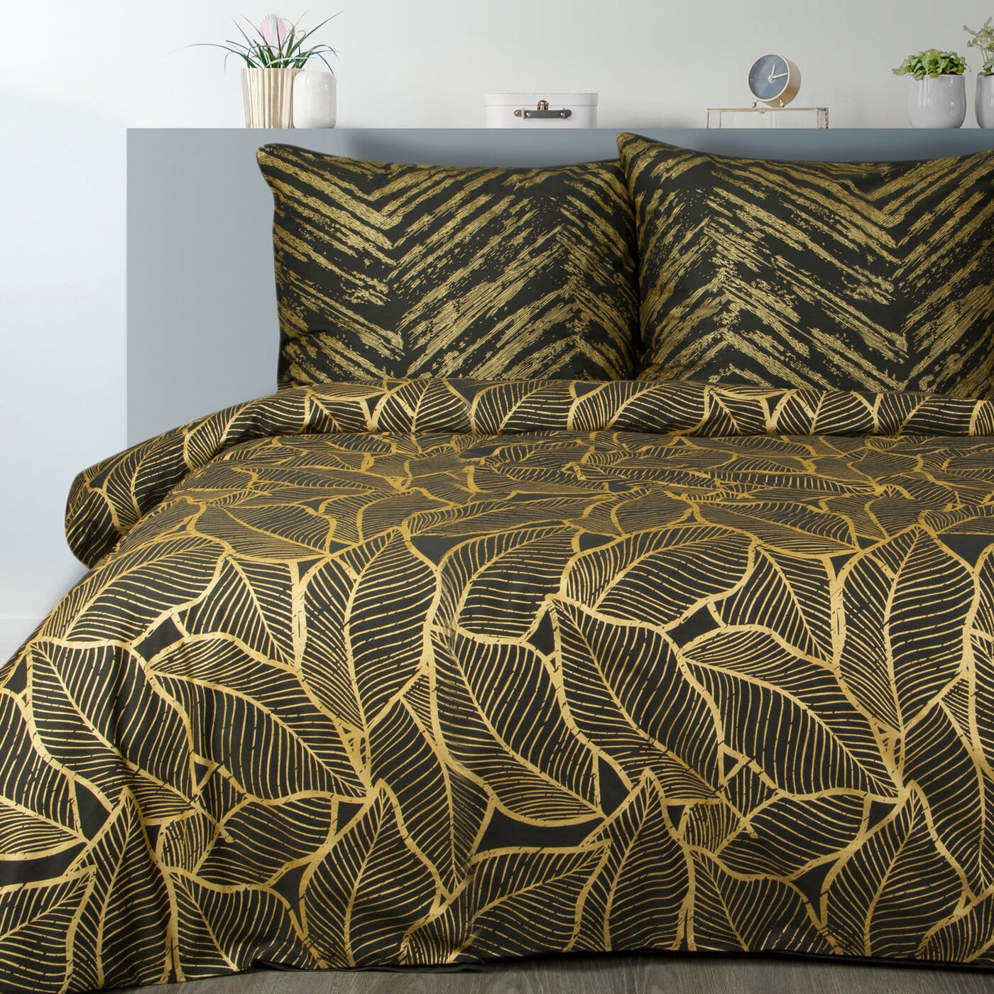 Pościel z satyny bawełnianej 160x200 premium czarno zlota