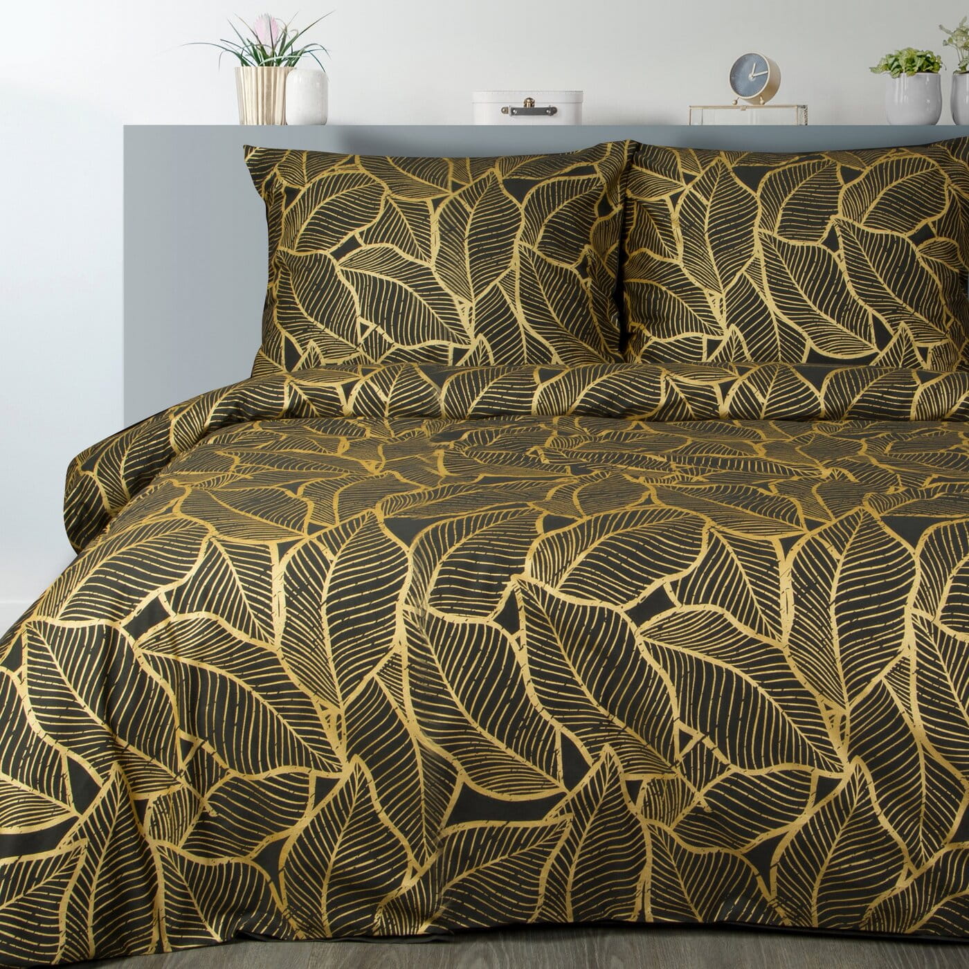 Pościel z satyny bawełniana 160x200 w czarno złota